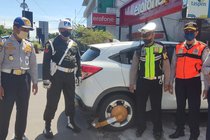 Petugas gabungan menggembok dua mobil yang parkir di zona terlarang untuk parkir