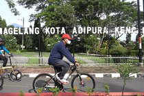 Wali Kota Magelang, Sigit Widyonindito bersama Sekda Kota Magelang serta kepala OPD melakukan pemantauan pelaksanaan PPKM di Kota Magelang dengan bersepeda
